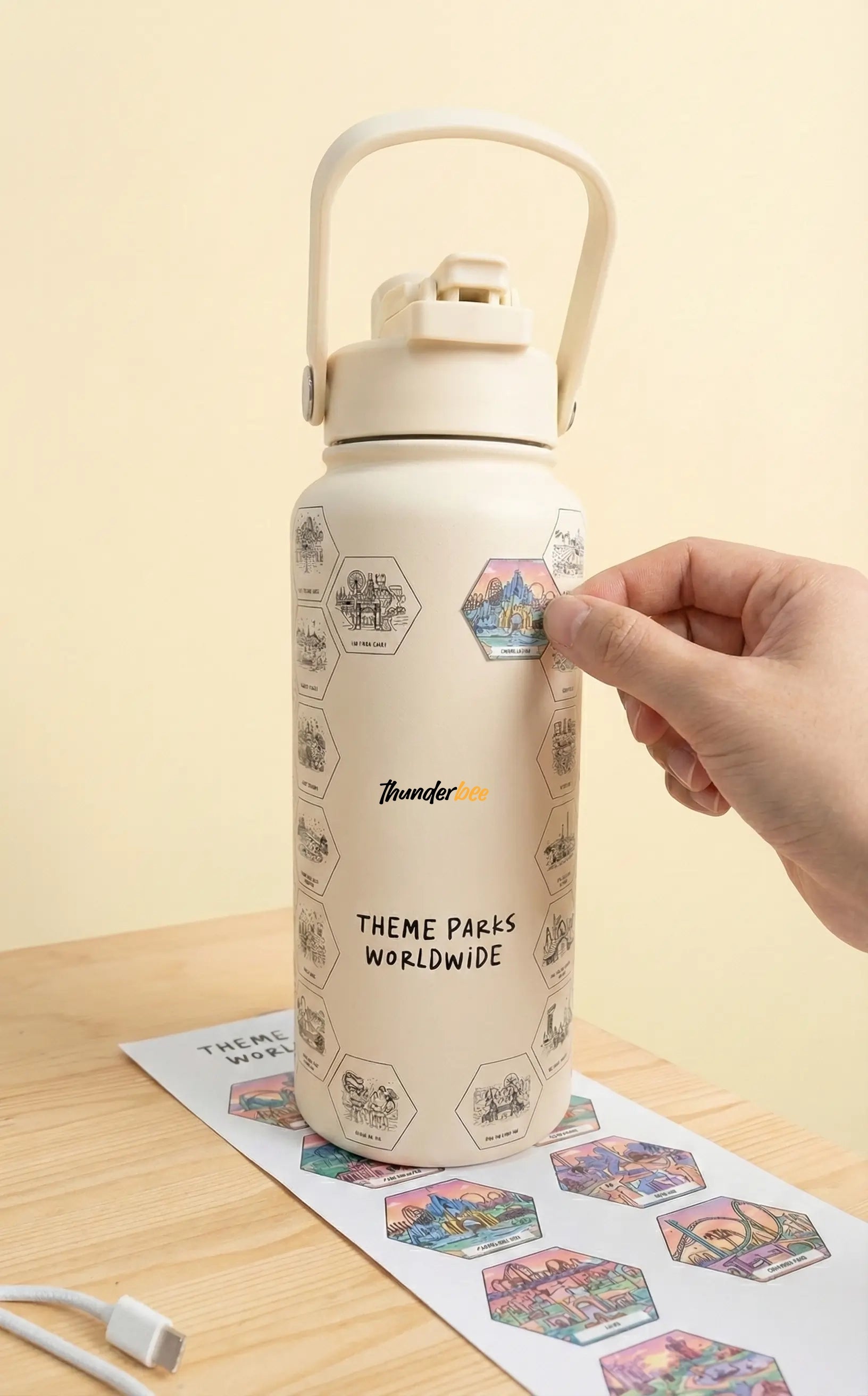 Thunderbee is the bottle you already bring to theme parks — now it helps you track every park you visit. After each trip, add a sticker and turn your bottle into a record of your adventures.